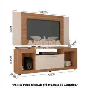Largura mínima: 160,2 cm (podendo chegar até 192,20cm)