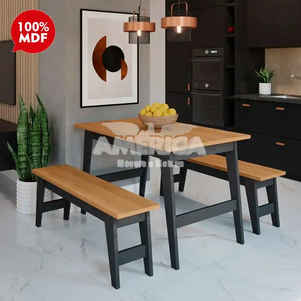 O Conjunto de mesa Aurora com 2 bancos da Cimol dará muito charme e elegância para a sua sala.